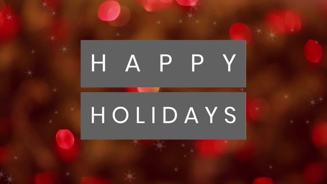 An animation featuring a textual ‘Happy Holidays’ message appearing over a background of animated snowflakes and softly glowing red lights, which evoke a warm and festive holiday atmosphere. This visual is perfect for seasonal greetings, festive emails, digital holiday cards, or social media posts to spread joy during the Christmas and New Year season.