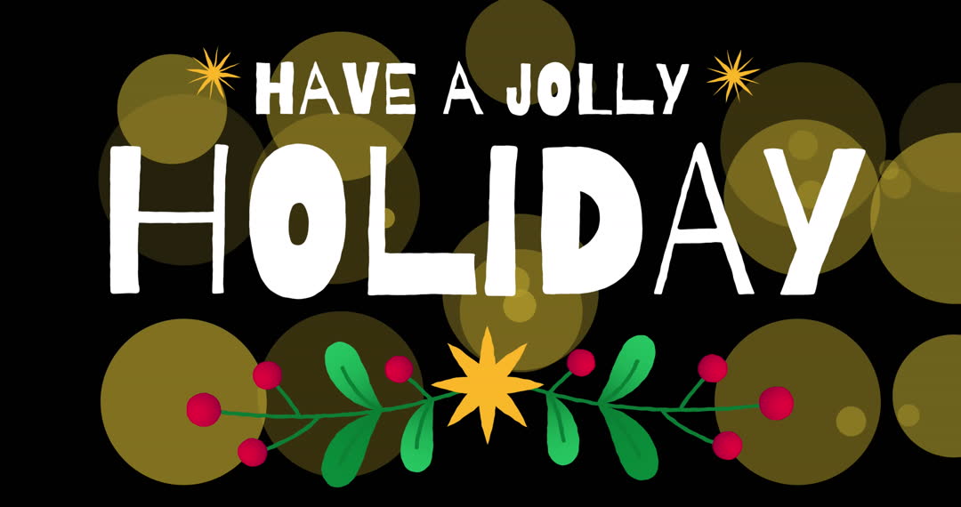Vibrant and celebratory text exudes joy with bold lettering against abstract elements like stars and colorful spots. Bright graphics coupled with festive text make it a versatile and appealing option for digital holiday promotions, greeting cards, or seasonal advertisements. Great for conveying warmth and excitement to audiences during Christmas and other holiday events.