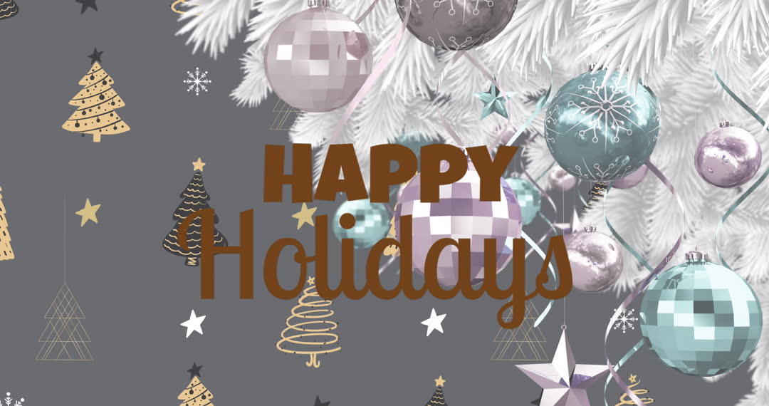 Festive design featuring a warm holiday greeting against a backdrop of sparkling ornaments and a decorative holiday tree. Ideal for seasonal cards, digital invitations, or as a joyful background for festive projects.