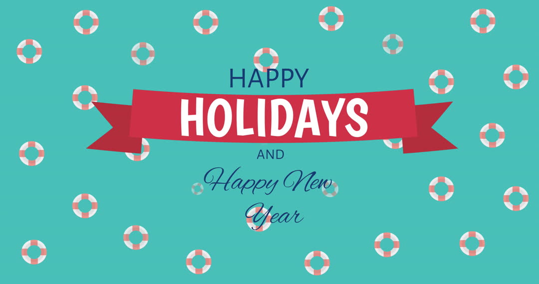 Festive greeting design featuring a bold 'Happy Holidays' text against a playful pattern on a bright blue background. This design is perfect for use in holiday invitations, email greetings, and social media posts to spread cheer and joy during Christmas and New Year festivities.