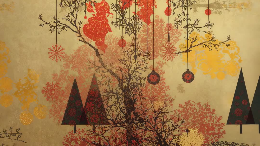 Festive Holiday Wallpaper with Ornament and Tree Design Video
