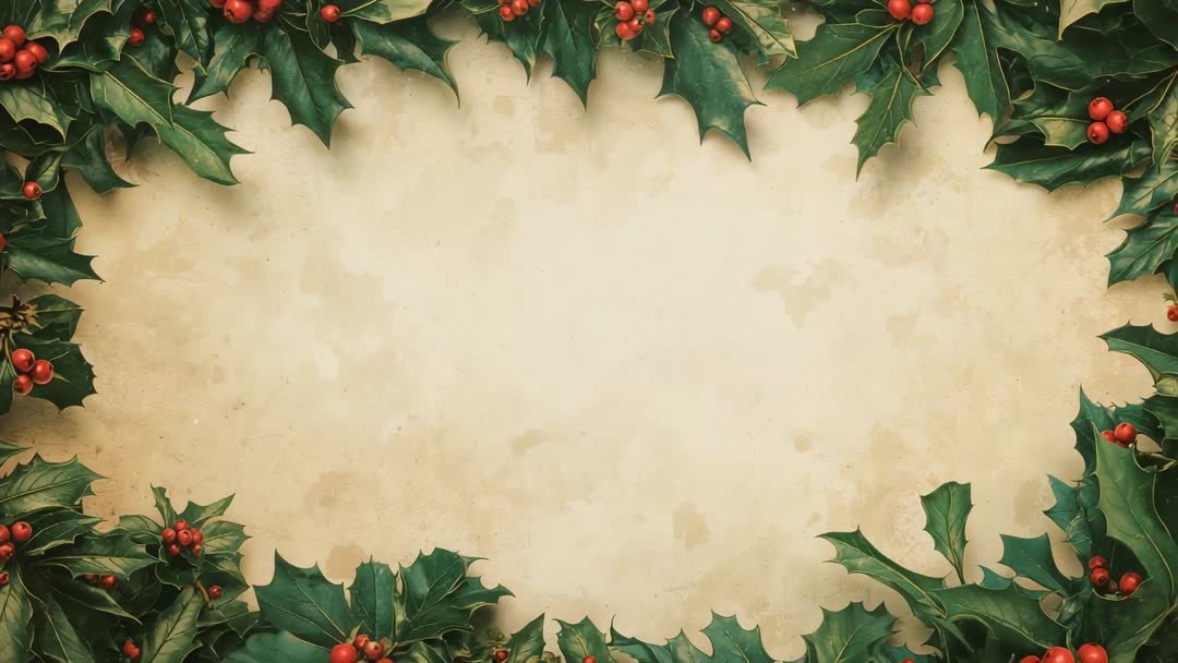 - Festive Holly and Berry Border Animated on Aged Parchment