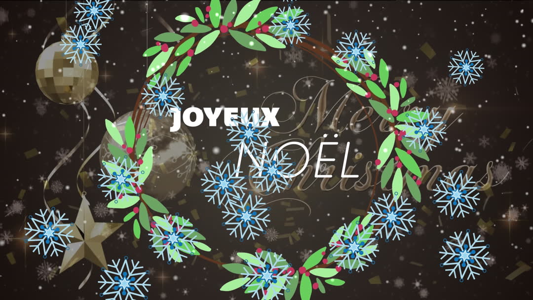 - Festive Joyeux Noël Animation with Snowflakes and Wreath