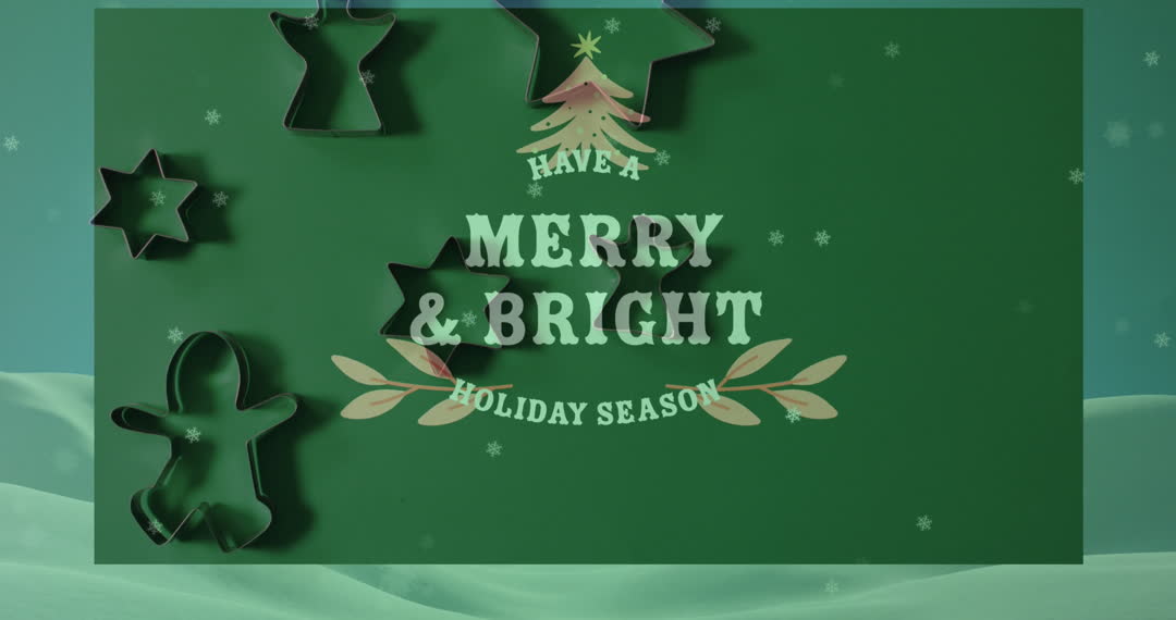 Green backdrop with festive Christmas design, featuring text wishing a 'Merry & Bright Holiday Season' surrounded by Christmas tree and star cookie cutters. Ideal for greeting cards, social media posts, or festive marketing materials conveying celebration and holiday cheer.