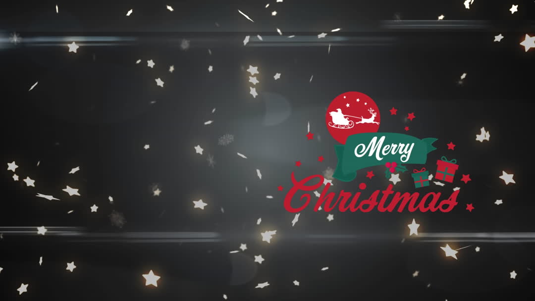 Bright and festive visual featuring animated text 'Merry Christmas' on a dark starry background, ideal for holiday greetings, celebration promotions, and Christmas-themed marketing materials]}