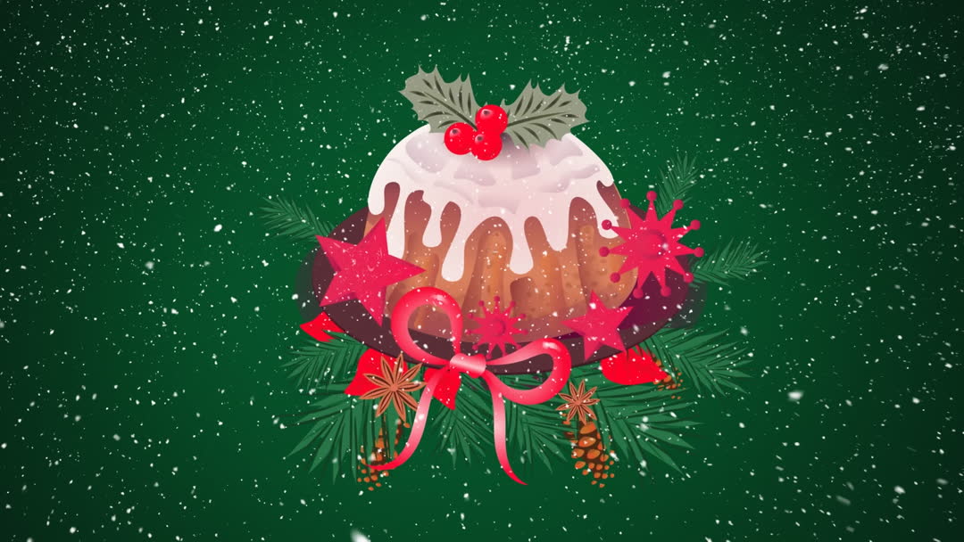 Festive Mistletoe and Pudding Illustration with Snowfall Video