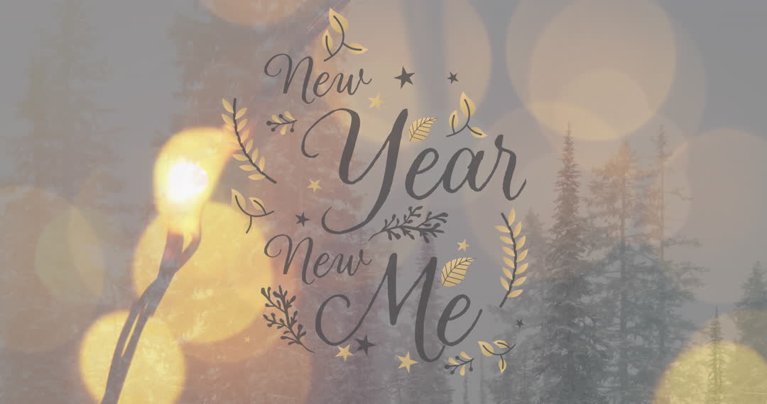 This vibrant design featuring a 'New Year, New Me' inspirational quote is set against a backdrop of twinkling bokeh lights and evergreen Christmas trees. Ideal for holiday marketing, social media themes, or personal cards, this motivational visual embodies the rejuvenating spirit of the New Year celebrations.