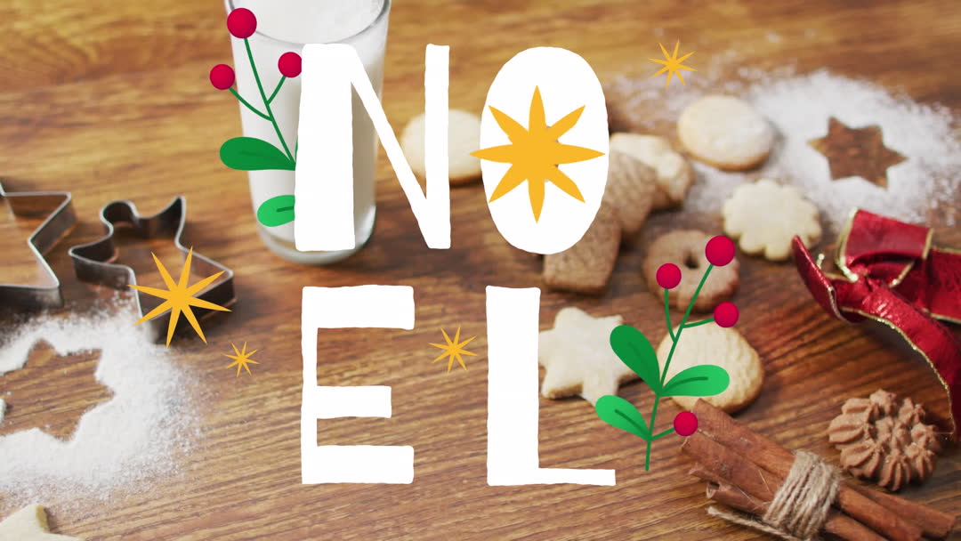 Festive Noel Overlay on Christmas Cookies and Decorations Video
