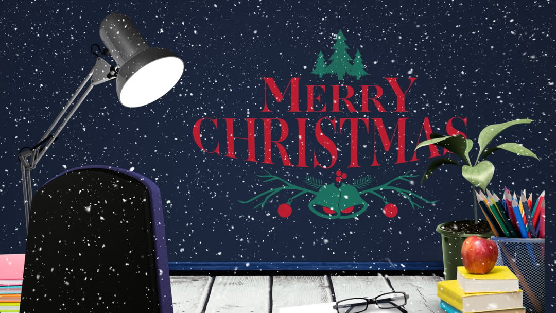 Festive Office Desk Celebrating Christmas with Falling Snow Video