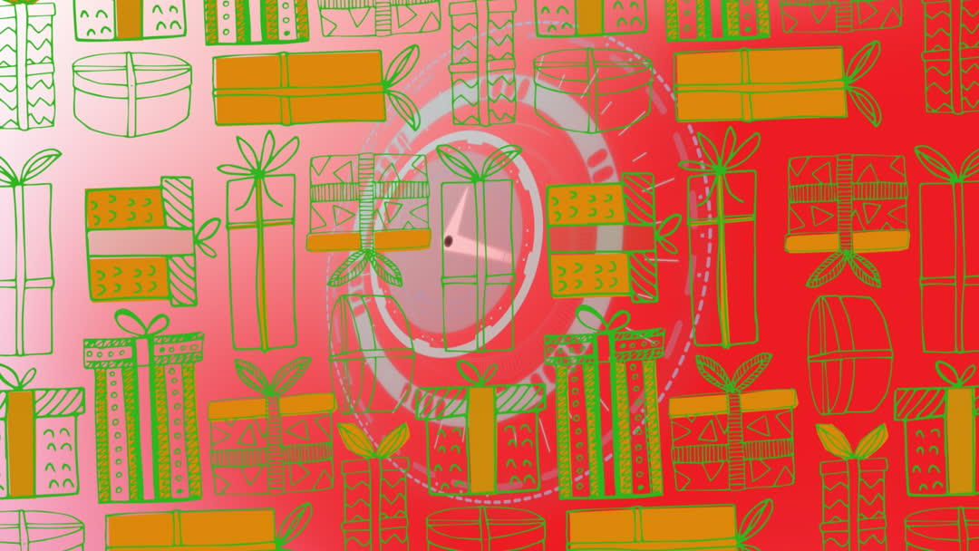 - Festive Presents and Clock Animation on Vibrant Red Background