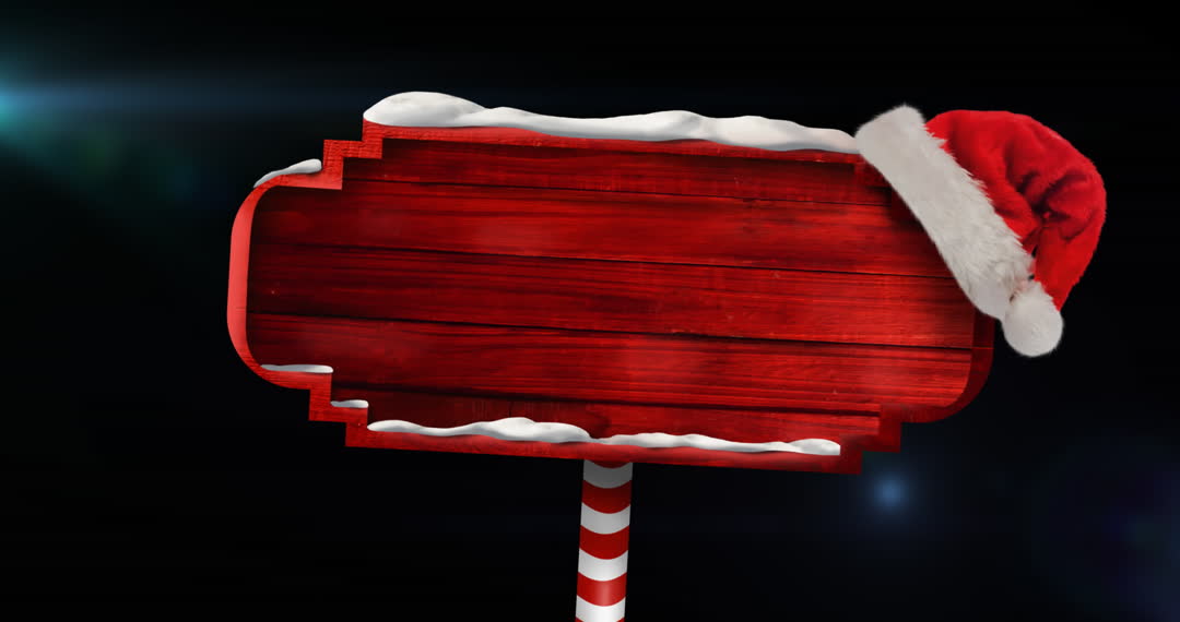 Festive Red Signboard with Santa Hat on Black Background Video