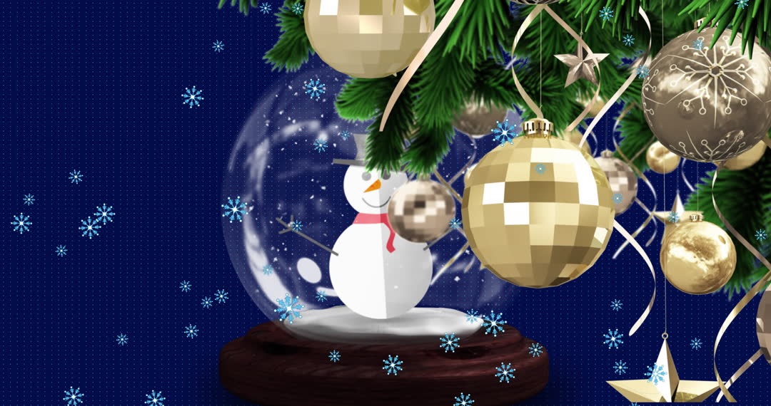- Festive Snow Globe Animation with Golden Christmas Baubles