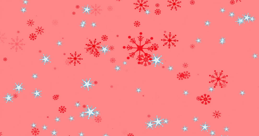 This animation features charming red and blue snowflakes gently falling over a vibrant red background, perfectly capturing the festive spirit. Ideal for digital Christmas cards, holiday event promotions, or festive website backgrounds. It ensures an enchanting and captivating design element for any winter or Christmas-related project.