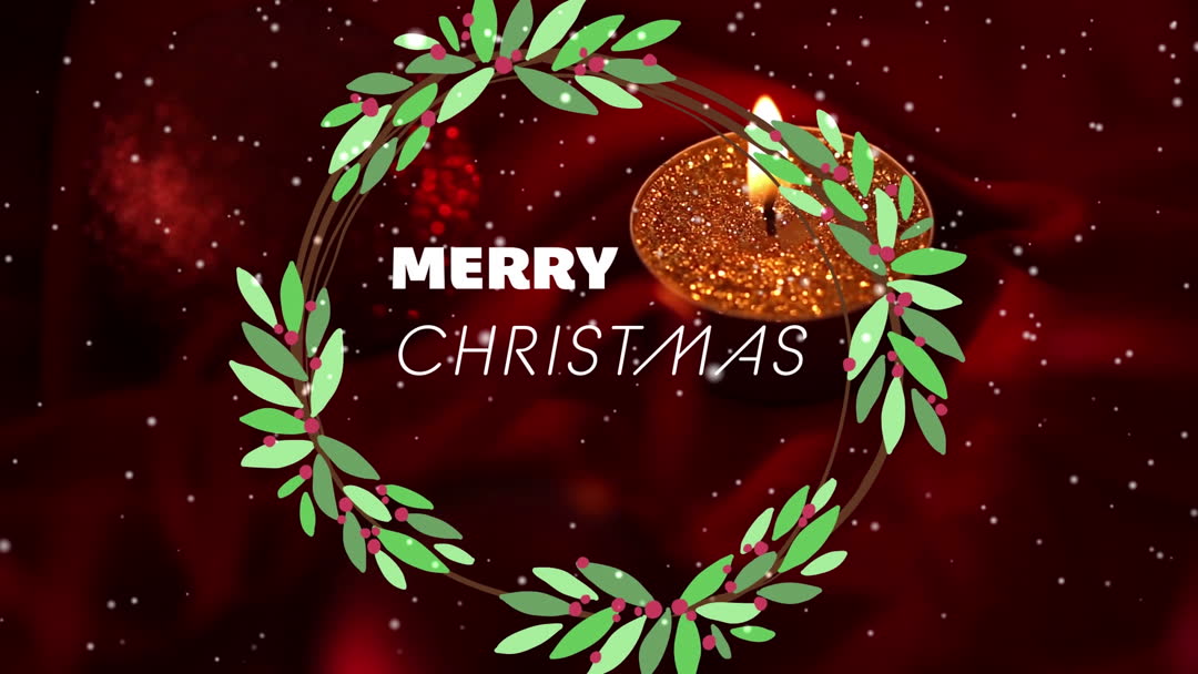 - Festive Wreath with Merry Christmas Text and Candlelight