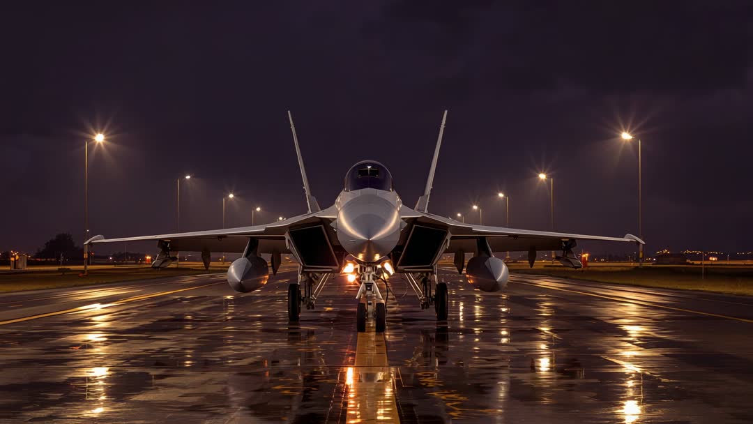 <a target="_blank" href=https://pikwizard.com/video/fighter-jet-on-wet-runway-at-night-ready-for-takeoff/99b42b8cb3b05e0e699882d3e65fa969/>PikWizard</a>