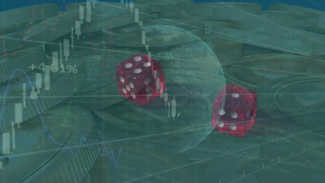 Financial Analysis with Dice Overlay Indicating Market Risks Video