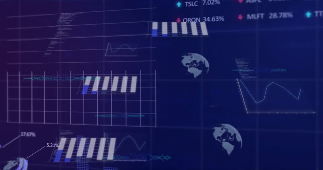 Financial Dashboard Updating with Animated Bar, Line and Area Charts and Rotating Globes Video