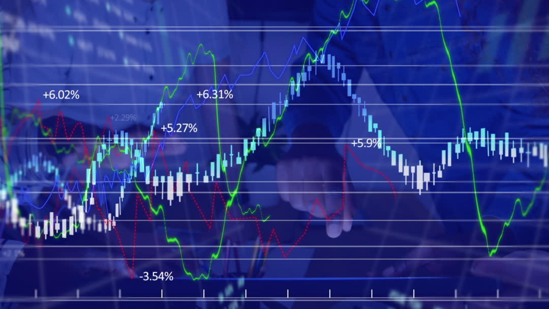 Financial Data Analysis with Professionals Overlaid with Analytics Video