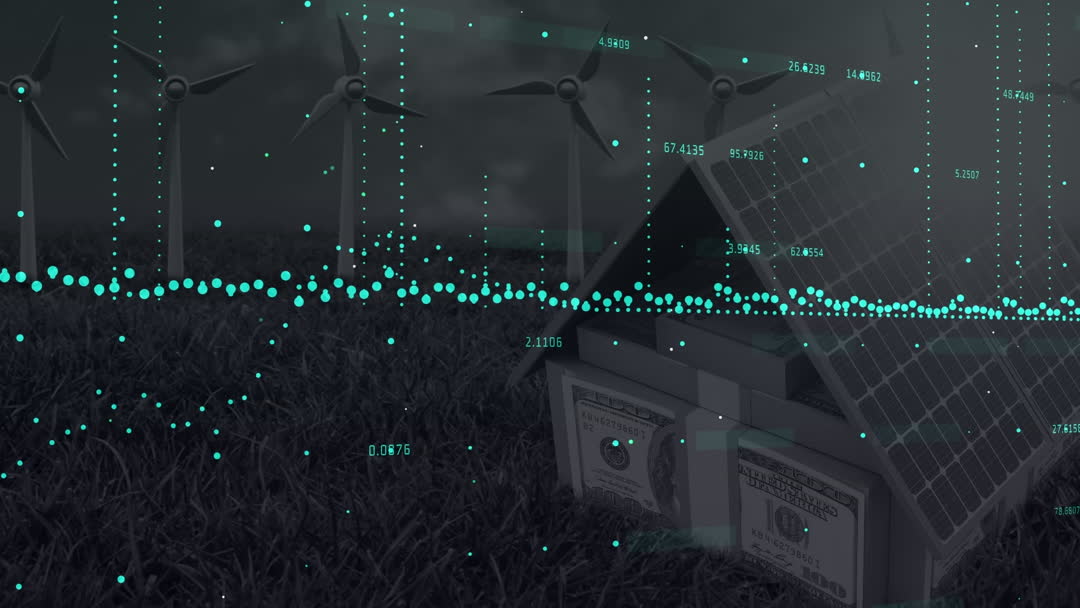 Financial Data Analyzing Clean Energy with Wind Turbines and Solar Panel Video