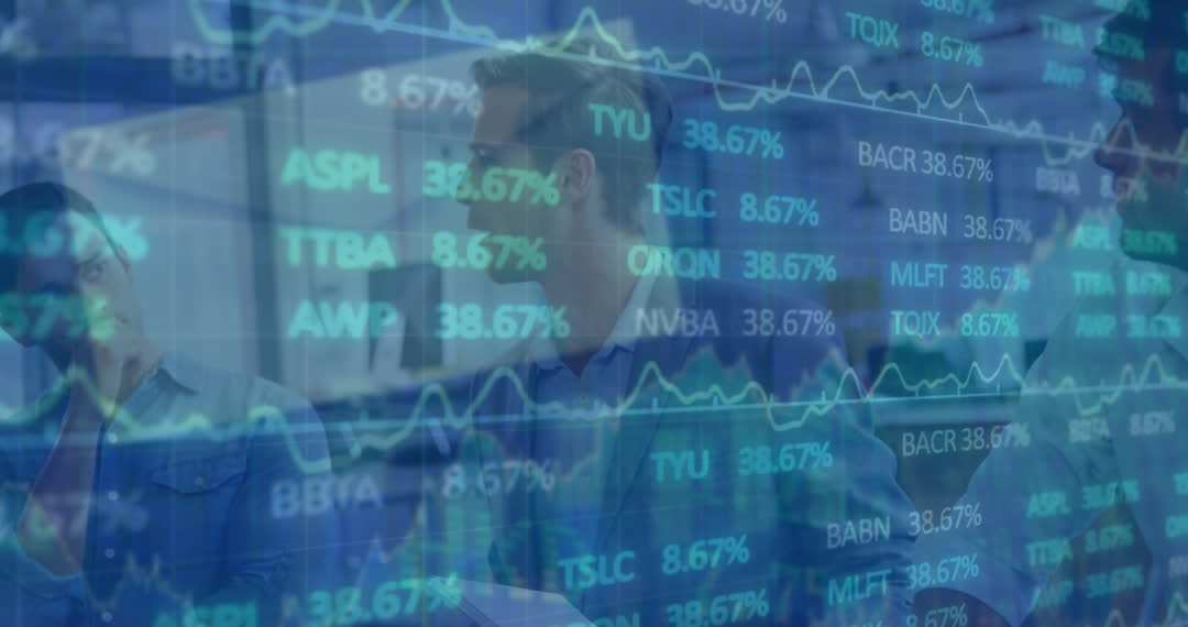 - Financial Data and Statistics Overlay on Discussing Colleagues