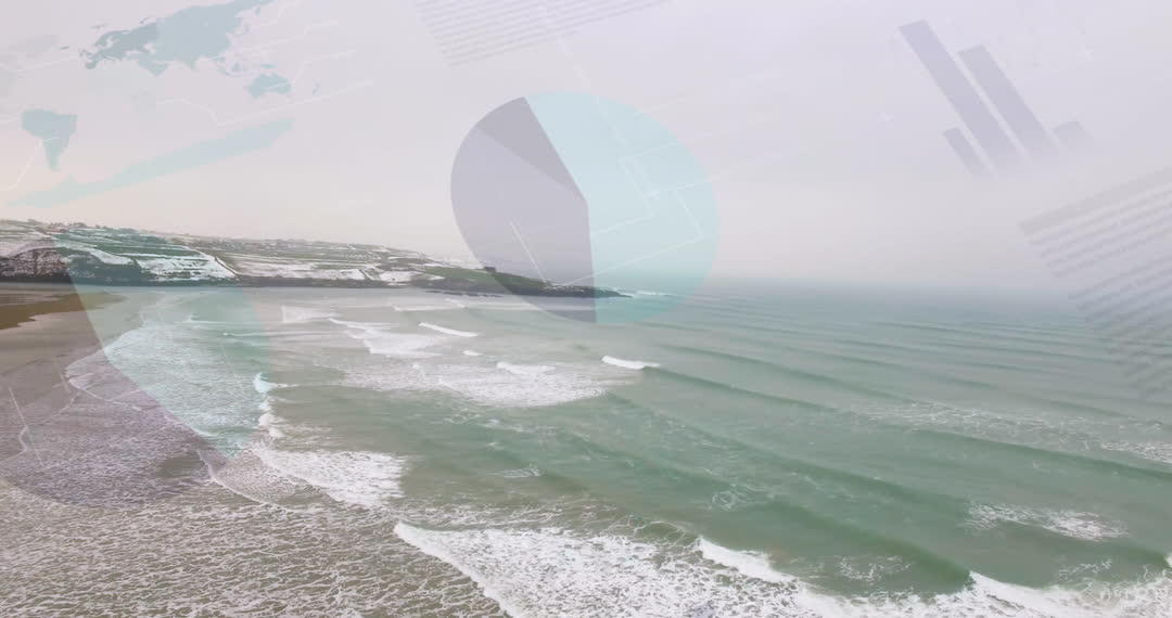 This video illustrates an animated financial data overlay set against a serene coastal seascape. Animated graphs and charts can be seen blending with nature, symbolizing the intersection of finance and sustainability. The call for integrating environmental views with economic analysis is depicted here. Suitable for use in presentations, articles about sustainable finance, reports on coastal economy, and digital design projects highlighting data and nature harmony.