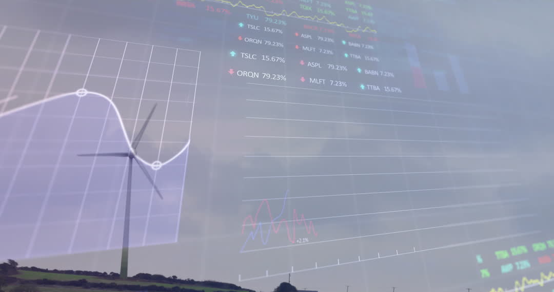 - Financial Data Overlaid on Eco-Friendly Wind Turbine Landscape