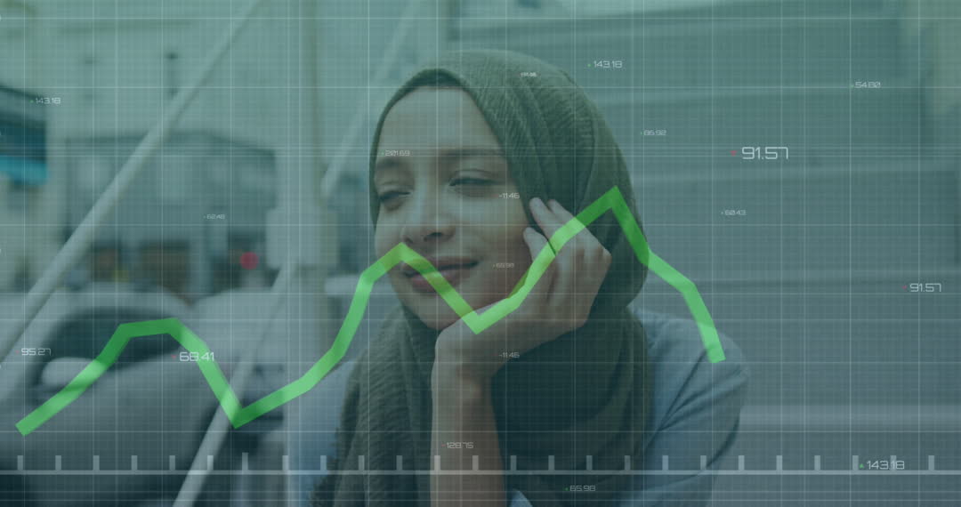 Financial Data Overlay on Relaxed Biracial Woman Insights Video