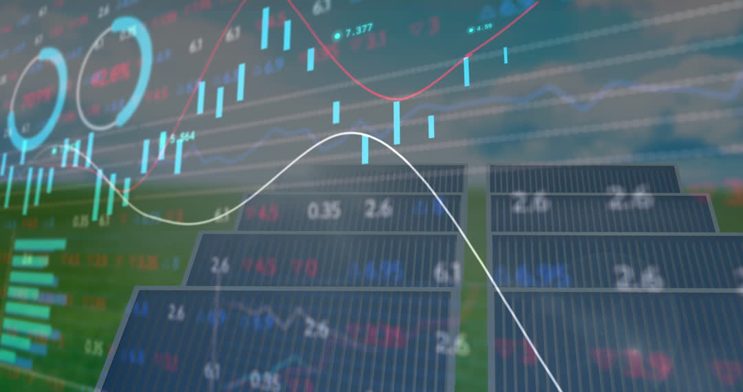 - Financial Data Overlay on Solar Panels Symbolizing Energy Investments
