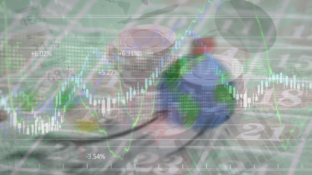 - Financial Data Overlay with Casino Chips Showing Market Volatility