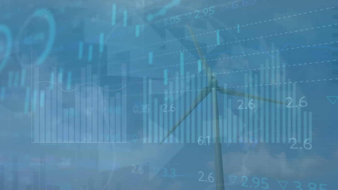 - Financial Data Overlay with Wind Turbine and Technology Theme