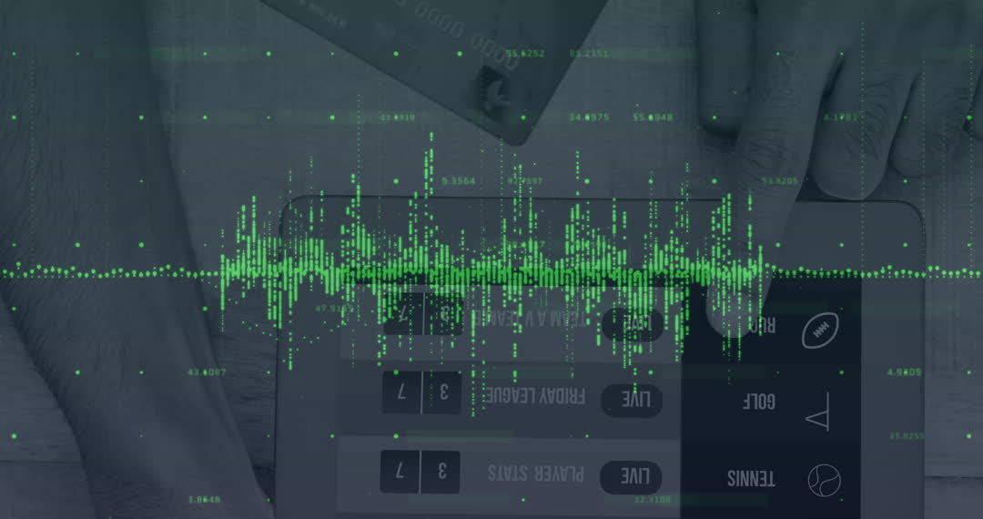 Hands interacting with a tablet merged with abstract financial data visuals suggesting modern business analytics and real-time data processing. Perfect for illustrating concepts of digital finance, technology expansion in business sectors, or online trading enhancements.