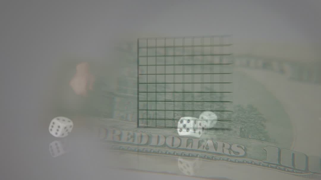 Financial Data Processing with Dice and Banknotes Overlay Video