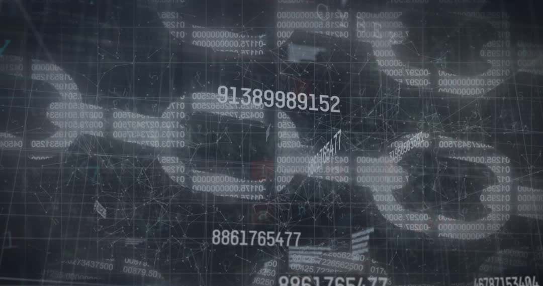 Financial data and digital network visualization depicted with animated processing elements and numerical details. Ideal for media focused on financial technology, global transactions, data analytics, or network connectivity impacts on finance. Crucial for presentations related to technological advancements in financial systems and analytics software.Minimum elements in animated style relay complexity and advancement in information technology.