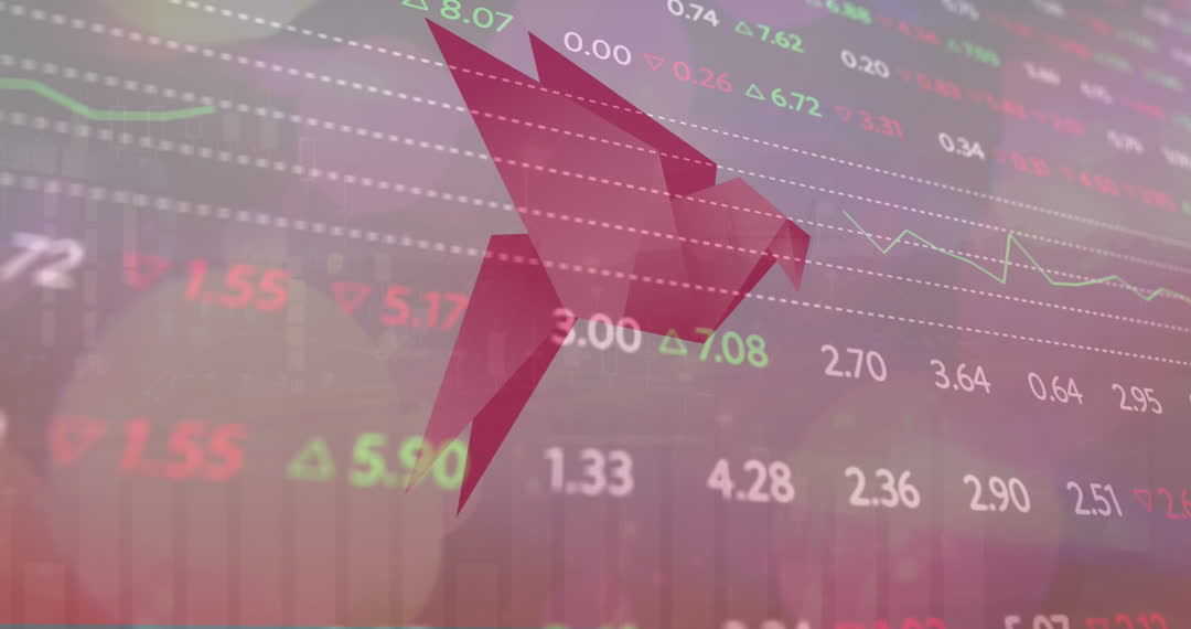 Depiction of digital financial data overlaying a crafty pink polygonal bird illustration, symbolizing potential in finance and innovative performance. This is ideal for financial technology presentations, investment promotion materials, or economic trend analysis media. Conveying themes of financial growth, market dynamics, or tech-driven advancements.