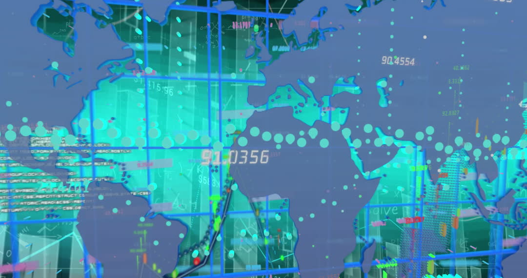 Financial Data Visualization on Global Map Background Video