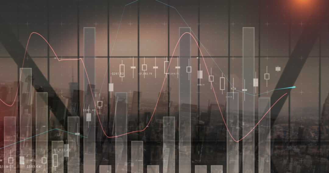 Abstract overlay of financial data and cityscape as viewed from an office window. Ideal for illustrating concepts of financial analysis, economic trends, or urban business environments. Suitable for use in presentations, finance blogs, investment reports, and business website videory.