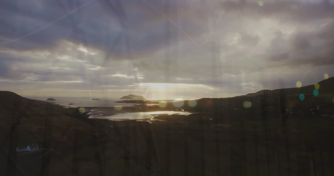 Financial Graph Animations Over Scenic Cloudy Landscape Video