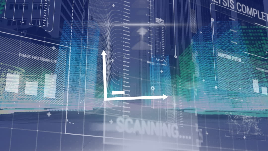 This video depicts a digital interface featuring financial graphs and data analysis overlays in a high-tech environment. Ideal for use in industries involving finance, stock market analysis, and digital technology by illustrating complex data processes. It is also suitable for tech company presentations, financial forecasting reports, or marketing materials showcasing advanced tech solutions in finance.