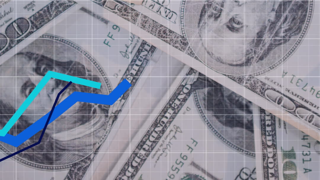 Depiction of financial growth and investment on backdrop of US dollar bills with a focus on economic forecasting and analysis. Useful for websites, articles, or presentations on finance, stock market trends, financial advice, or economic growth predictions.