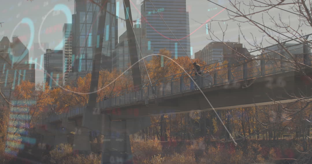 Animation presents vivid interplay of financial data and cityscape, highlighting evolving market dynamics amid an urban backdrop. Perfect for illustrating themes in global business, financial technology innovations, and economic analyses in presentations, marketing, or educational resources.