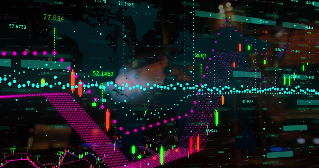The visual depicts a vibrant amalgamation of financial data charts interspersed over a digital global map background, illustrating economic or stock trading concepts. The overlay seeks to convey a dynamic and progressive analysis useful for expressing trends in finance, stocks, or global economy themes. It suits financial presentations, trading platform descriptions, and economic trend determiner visuals.