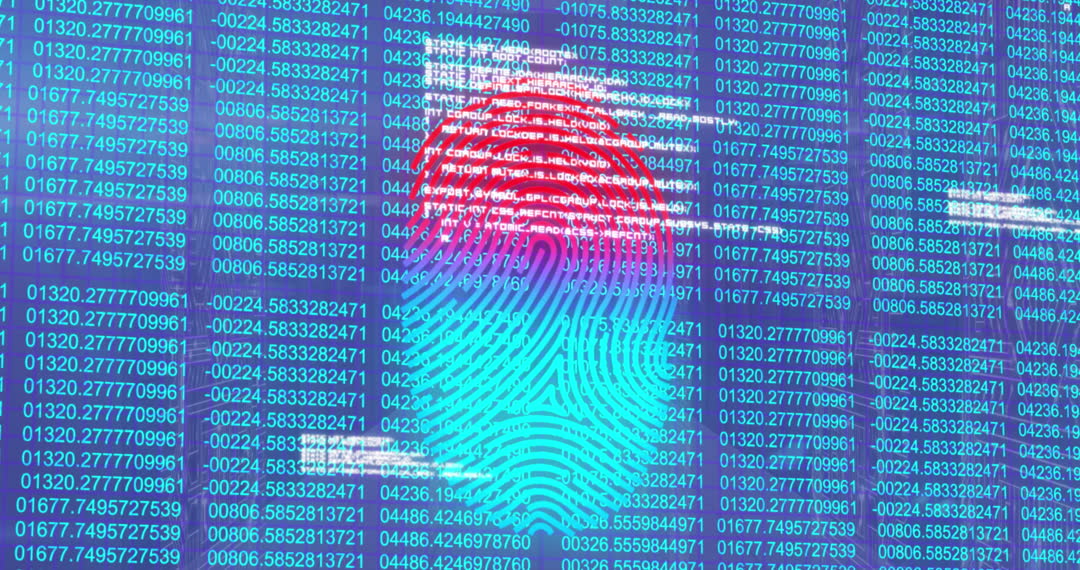 Detailed visual of fingerprint with overlaid numerical codes, highlighting cybersecurity concepts. Useful for illustrating digital identity, encryption, data protection, and modern vulnerabilities in cyber protection campaigns.