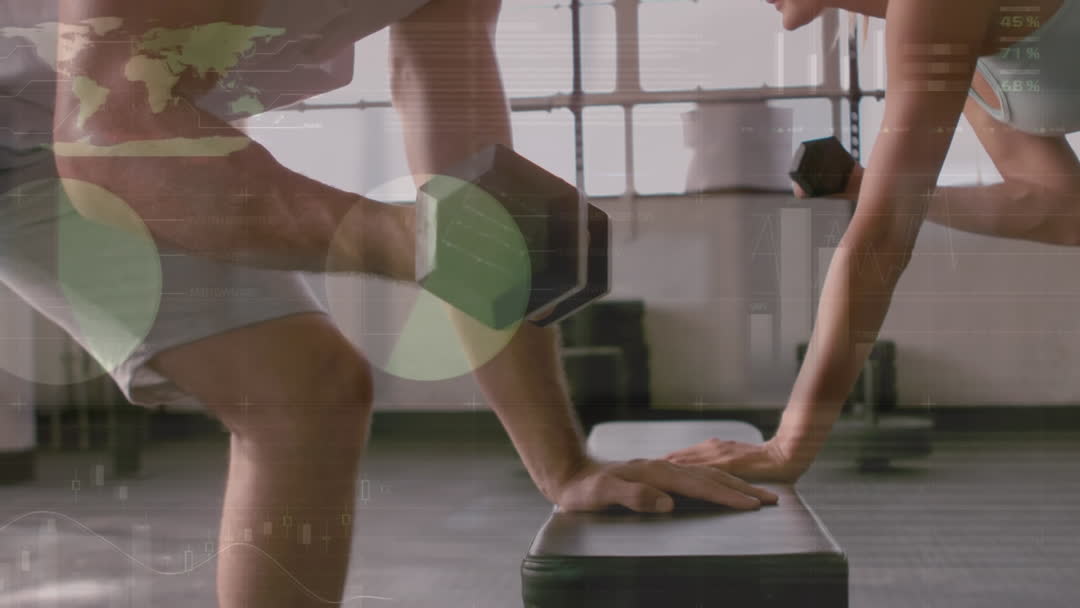 Fit Couple Training with Dumbbells Amid Data Visualization Video