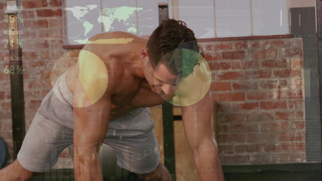 - Fit Man Exercising with Kettlebell and Graphical Overlays