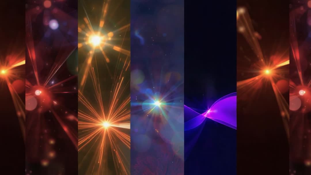 - Five-Panel Abstract Light Looping with Pulsing Starbursts, Nebula Glow and Ribbon Waves