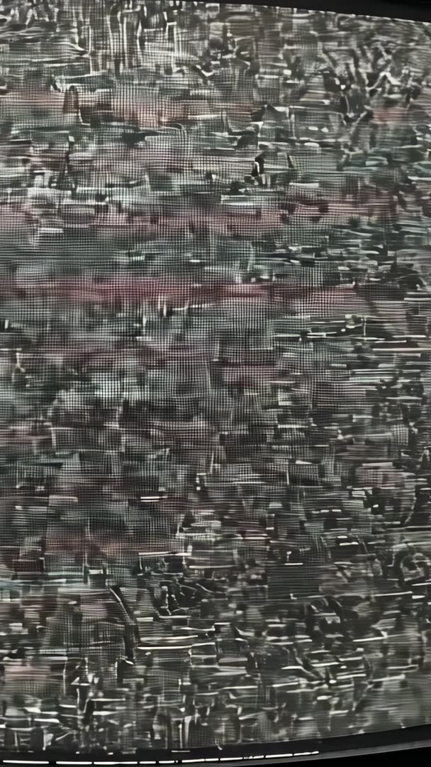 AI Generated Image. Vertical video showing curved-oval CRT television screen flickering with heavy static and horizontal scanlines. Close-up framing capturing bezel edge, curved glass reflections, and pixel grid texture. Muted color bands and subtle red-green noise creating grainy, nostalgic mood. Useful for background plates, music video overlays, film transitions, title sequences, vintage broadcast effects, horror and thriller scenes, and design mockups. Loop-friendly action providing steady flicker and random noise patterns for seamless repetition. Delivering authentic analog feel for projects seeking retro technology or lo-fi aesthetics. Suggested usage: blending with color grading, adding VHS grain filter, combining with bold typography for opening credits, using as texture layer in motion graphics. Shot vertical orientation, optimized for smartphone and social media vertical feeds.