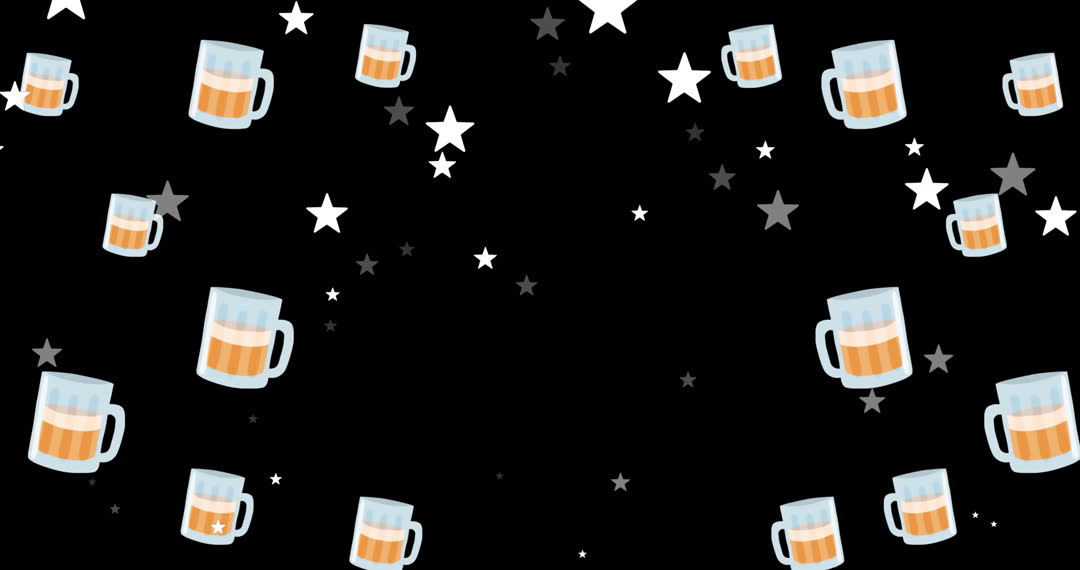This festive design displays beer mugs and stars against a black backdrop, capturing a playful and cheerful holiday spirit. It is perfect for incorporating into holiday party invitations, background designs for festive content, or digital media highlighting celebration and joy.