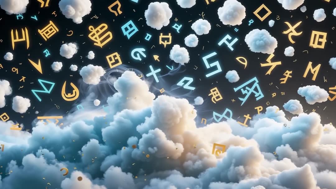Floating Clouds and Luminous Glyphs in Mystical Sky Video