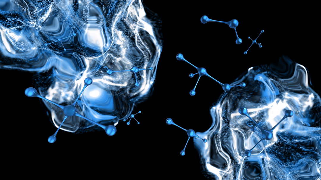 This video depicts blue molecular structures floating over abstract liquid textures on a black background, symbolizing scientific research and technology. The contrast highlights the focus on molecular biology, chemical analysis, and medical studies. Ideal for use in scientific publications, educational materials, and technology-related media.