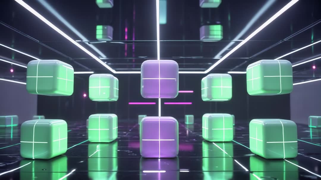 Floating Neon Cubes in Futuristic Digital Grid Video
